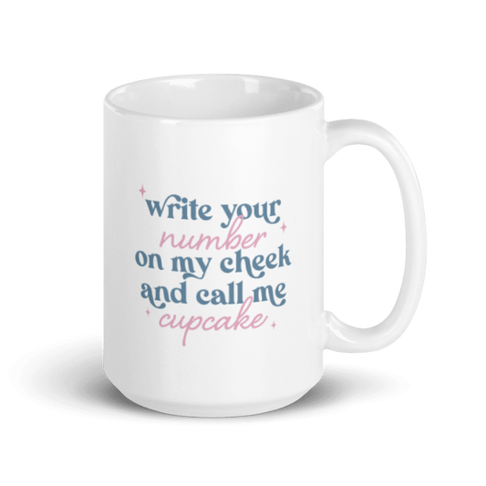 Write Your Number & Call Me Cupcake White glossy mug